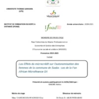 - Les effets du microcrédit sur l'autonomisation des femmes de la commune de Saaba : cas de la PAN African Microfinance SA