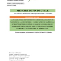 ZONE Karim, “La durabilité des services rendus par les organisations de producteurs à leurs membres : cas de l'approche basée sur le développement des systèmes de marché dans le cadre du programme strengthening african rural smallholders (STARS) de Icco-Cooperation au Burkina Faso,” Bibliothèque numérique de l'IFOAD-UTS, consulté le 5 avril 2026, https://bib.ifoad-uts.net/items/show/11.