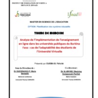 - Analyse de l’implémentation de l’enseignement en ligne dans les universités publiques du Burkina Faso : cas de l’adaptabilité des étudiants de l’Université Virtuelle