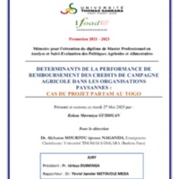 - Déterminants de la performance de remboursement des crédits de campagne agricole dans les organisations paysannes : cas du projet PARTAM au Togo